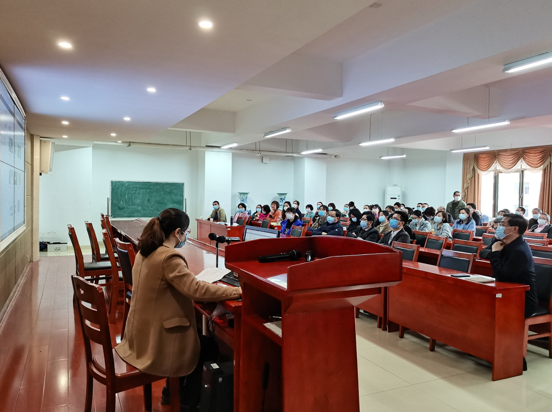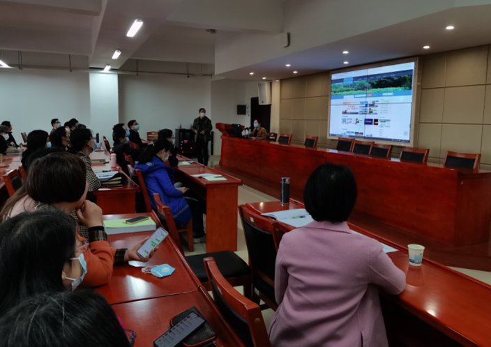2022年3月29日,”‘一平三端’助力打造混合式智慧课堂“教学研讨培训会在立言楼四楼会议室举行,讲座由邓桂英老师主讲,教务处副处长贺玲、古天乐代言太阳集团领导及全院教师参加了培训。