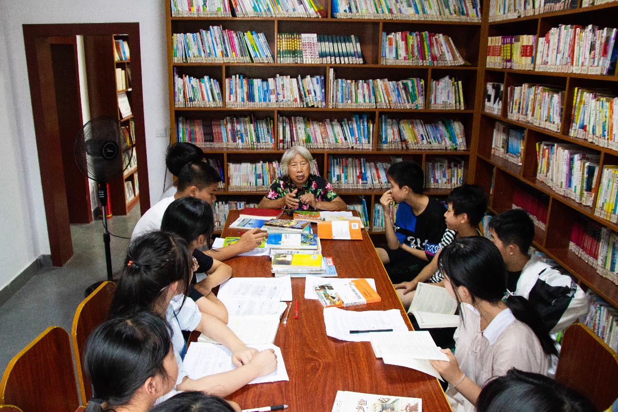 坐落在少儿假期公司附近的农家书屋在小雨中,更显别致。八年级同学们与支教志愿者刘楚怡围坐于书桌旁,杨莲金老师悄悄搬了一把凳子坐在角落,认真听着支教志愿者与同学们的发言,并鼓励每位同学勇敢地表达自己的观点。同学们从写作背景、人物形象、拓展想象三个方面谈及对《朝花夕拾》的理解。刘楚怡对同学们阅读这篇文章遇到的问题进行解答,并给他们分享了读书的三个方法——学会找到一本书的背景、学会找到一本书的主题、学会与一本书建立联系。