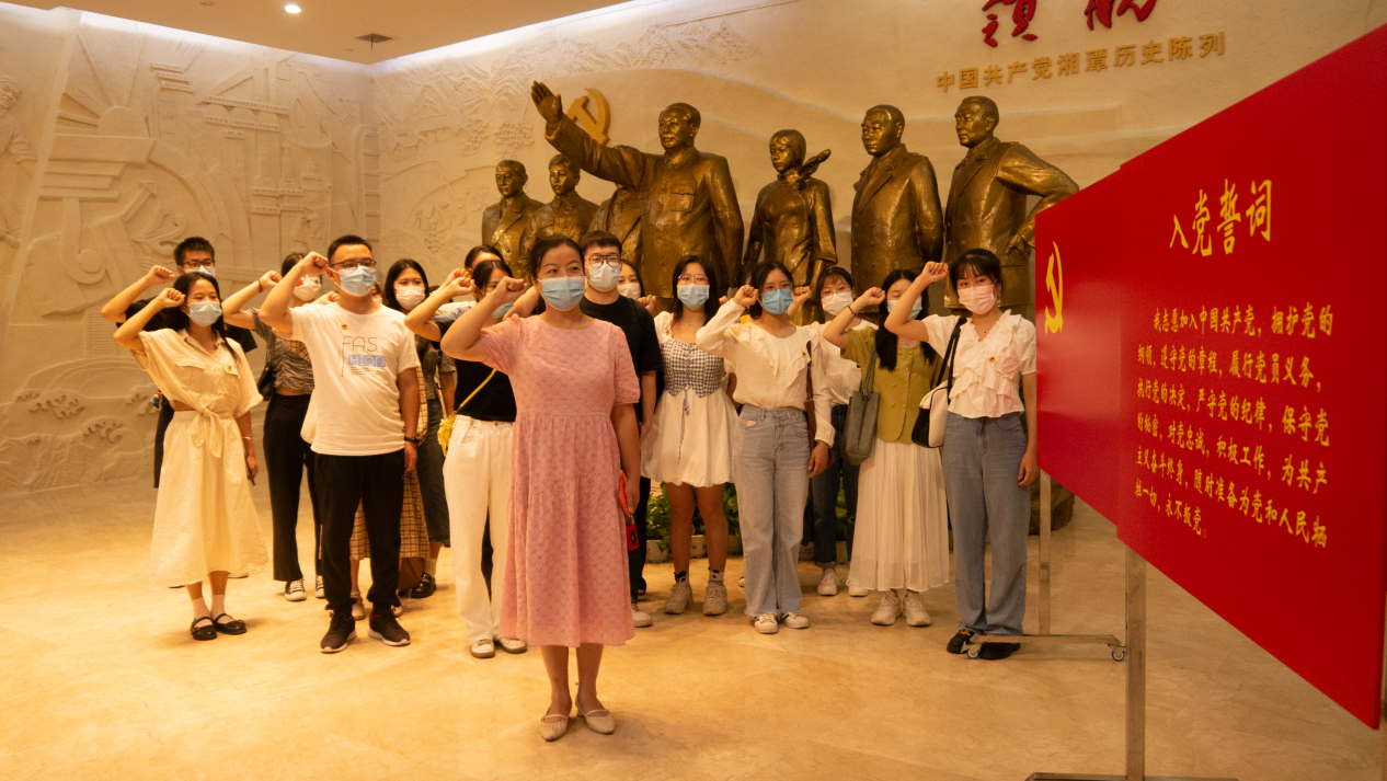 在赵老师的讲解下,全体党员一起重温了中国共产党艰难困苦的奋斗历史与发展历程。一个个生动的故事、一张张泛黄的珍贵图片、一件件具有历史痕迹的宝贵文物,将湘潭地方党组织在革命、建设和改革各个历史时期所走过的光辉历程、发生的沧桑巨变一一展现在全体党员面前,为同学们上了一堂生动的集体党课。