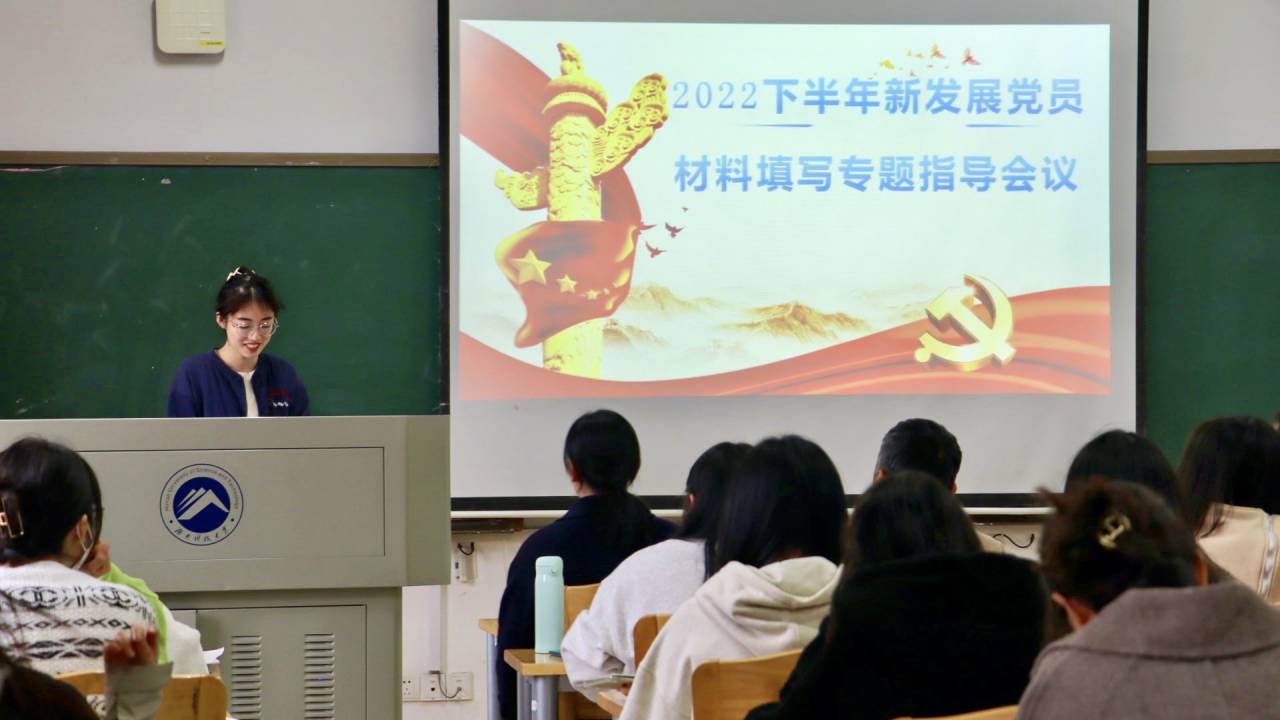 会议伊始,刘丽祺同志对新发展党员材料的要求进行了系统讲解,并对现场提出的问题给予了细致的解答。随后,邓辉同志发表讲话。他指出,新发展党员要从思想上高度重视入党志愿书的撰写,行动上严格落实。此外,他还指出了撰写入党材料中的常见错误,启示同学们严谨细致对待材料填写,勿犯小错。