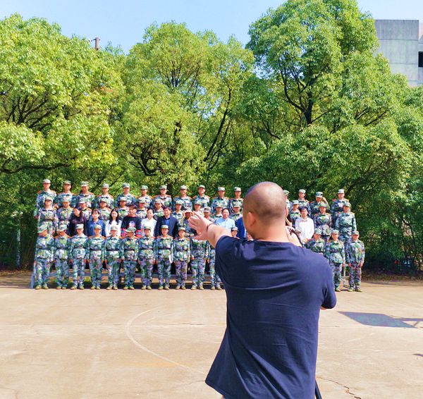 此后,在教官的带领下,大一新生们以排为单位,每排列队进行拍摄。摄影老师耐心指导,认真调整着左右位置,以期画面整齐干净。老师们细心地提醒员工们注意脚下台阶,以免踏空;助班们则不断帮助员工们整理着装。“来,大家看这里,笑一下,一,二,三。”“茄子……”响亮的口号震彻篮球馆,照相机里的画框,师生们灿烂的笑容永久的留在了画面里。照片上一张张稚嫩的面孔,在背后绿树的映衬下,显得格外富有朝气。