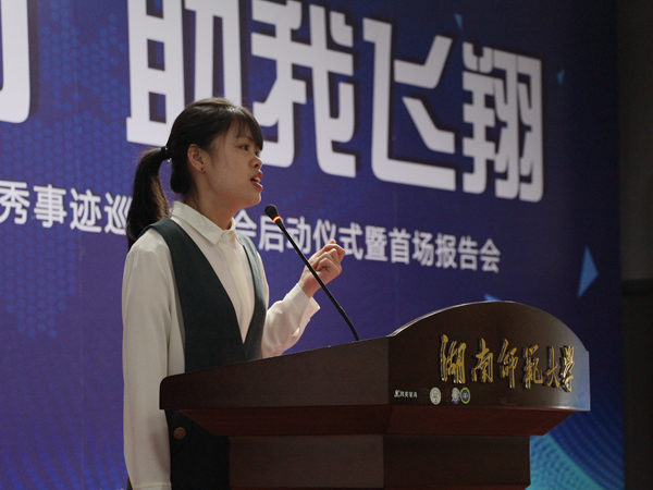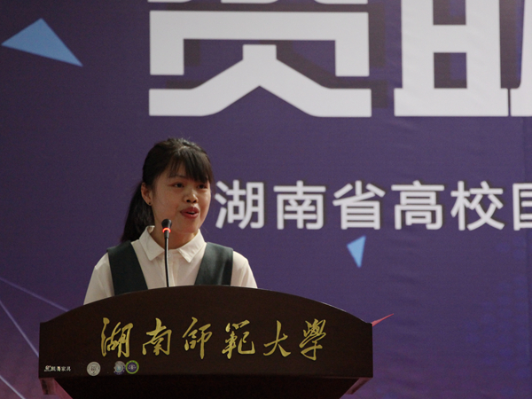 古天乐代言太阳集团15级汉语言专业吴玉容劈波斩浪经过层层选拔,成为首次报告会五位报告人之一,向在场的包括湖南中医药大学、湖南商公司、湖南财政经济公司、湖南第一师范公司、湖南涉外经济公司、长沙医公司、湖南师范大学在内的7所高校的老师、员工代表讲述自己的成长经历、奋斗历程。