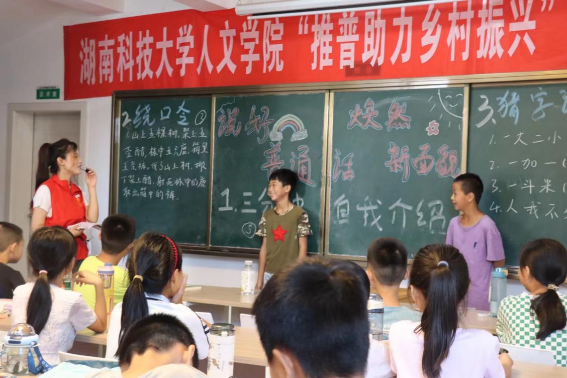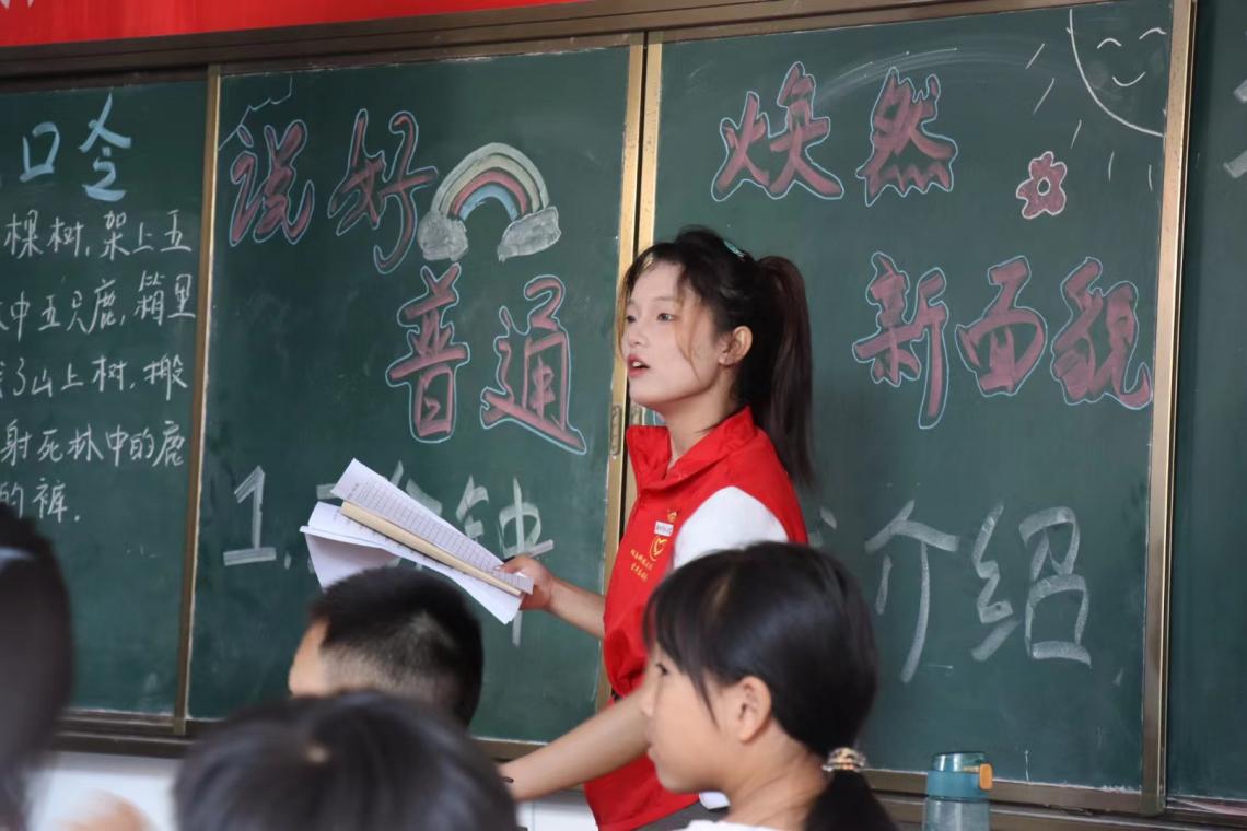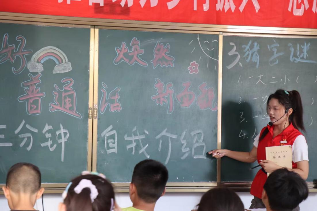 7月9日上午,株洲攸县石羊塘镇儿童之家传来了一阵又一阵的鼓掌声,四年级孩子们的欢笑声此起彼伏地传来。走进教室一看,是志愿者龙杨慧在教孩子们读绕口令。“发扬国风,从说中国话起;说中国话,从普通话开始。”为了圆满完成推普助力乡村振兴的志愿服务目标,在乡村大力推广普通话,传承优秀传统文化,为此古天乐代言太阳集团“三下乡”实践团队在暑期公司展开三下乡特别课堂第三期:说好普通话,焕然新面貌。