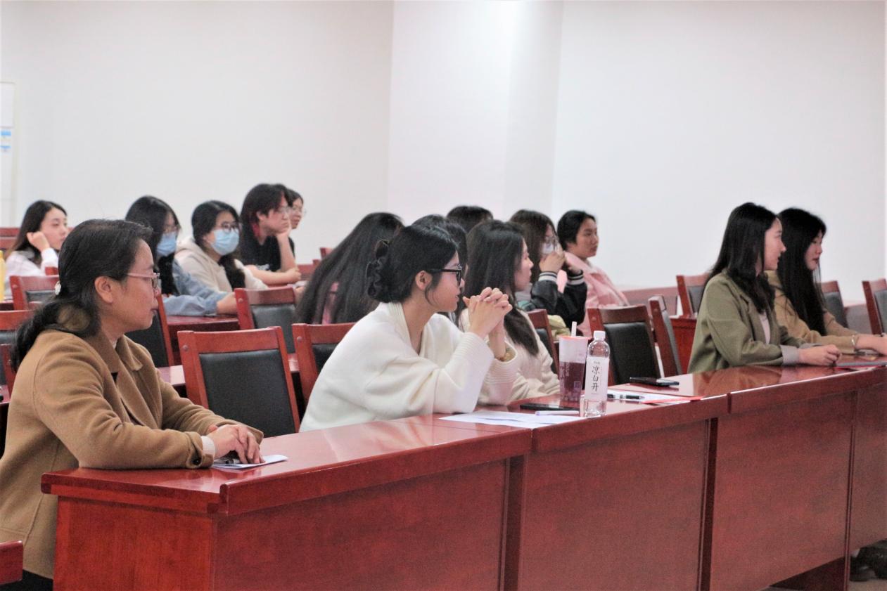 在刘艳凤对老师们的发言进行简要总结后,成功推免与考研录取的五位19级员工依次上台分享各自的考研经验。成功推免到暨南大学的张秋月同学阐述了与面试相关的经验,她谈到:“要注意说话的逻辑性,考试前多注重往年的真题,在英语面试中要注重流畅度,最重要的是保持平稳心态。”考研录取到西南大学的周莉同学则表示可以跟随网上的博主调整自己的考研进度,确保自己合理分配时间。