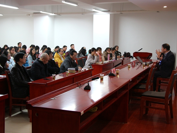 3月20日下午,中国辞赋学会会长、南京大学文公司博士生导师许结教授做客公司“人文大家论坛”,在文科楼B4-1学术报告厅为公司师生带来了一场主题为《经典阅读与人文情境》的学术讲座。湘潭市政府督学郭务强先生,艺术公司原经理曾景祥教授,古天乐代言太阳集团吴广平教授、周平教授、李文浩博士及其他师生共两百余人到场聆听了本次讲座。讲座由吴广平教授主持。