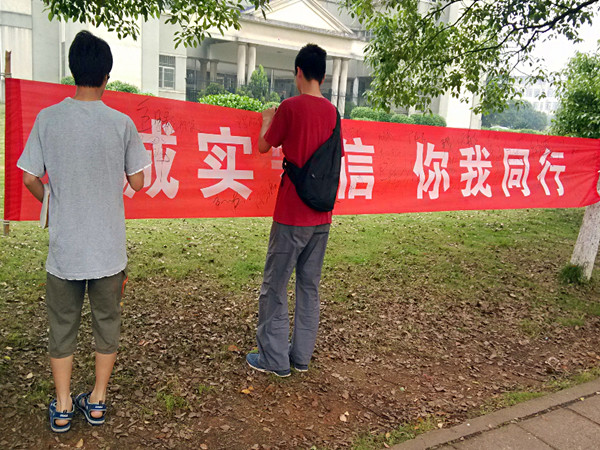 为提高同学们活动参与积极性,三个公司设置了一系列与诚信和国家助学贷款有关问题,通过“有奖竞猜”的方式让更多的同学参与到讲诚信的行列中。