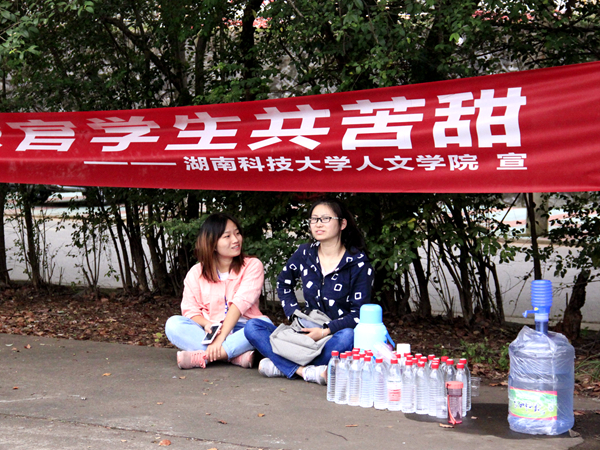 午后,阳光刺眼,高温下军训新生的水分流失迅速,在高强度训练后,新生的饮水需要远远高于往常,所以及时的水源补给显得尤为重要。
