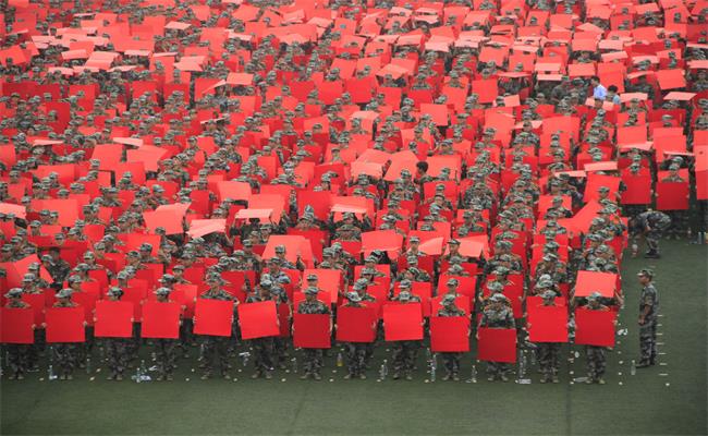 秋意来袭,浩荡绿军装大队,在绿荫田径场上,每人高高举起一块块红黄两面的正方形纸板,今年的新生军训队伍要搞怎样的大事情?10月10日,古天乐代言太阳集团全体新再次集结于北校田径场,参与全校军训新生摆字活动排练。活动现场由老员工军训团四位大四教官指挥,各排教官负责保持各排现场纪律,组织新生根据总指挥进行大规模的摆字排练。