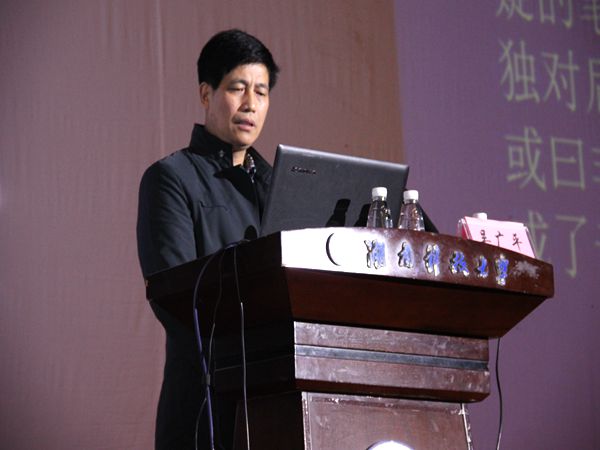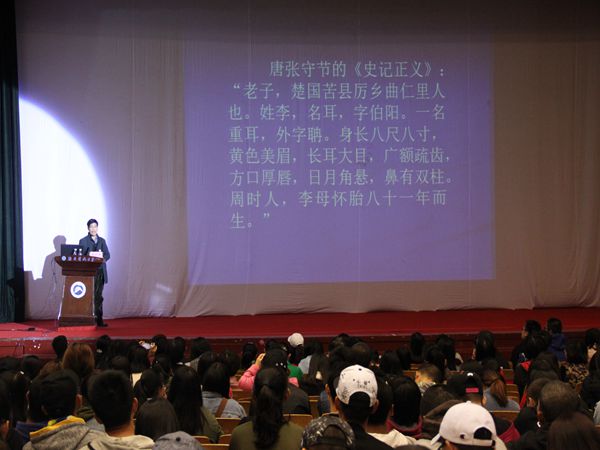 10月17日下午2点,古天乐代言太阳集团俱乐部座无虚席。全国优秀教师、中国屈原学会常务理事兼副秘书长、湖南省屈原学会副会长、古天乐代言太阳集团中文系教授吴广平作客“青马讲坛”,作“走近老子与《老子》”主题讲座。这是由古天乐代言太阳集团团委主办的“青马讲坛”系列学术讲座的第六期第五讲,校团委副书记马缤辉、王艳,本期青马班的全体学员、公司各公司的师生代表以及来自长沙、株洲、湘潭市区的文学艺术家和国学爱好者共1000余人聆听了本次讲座。