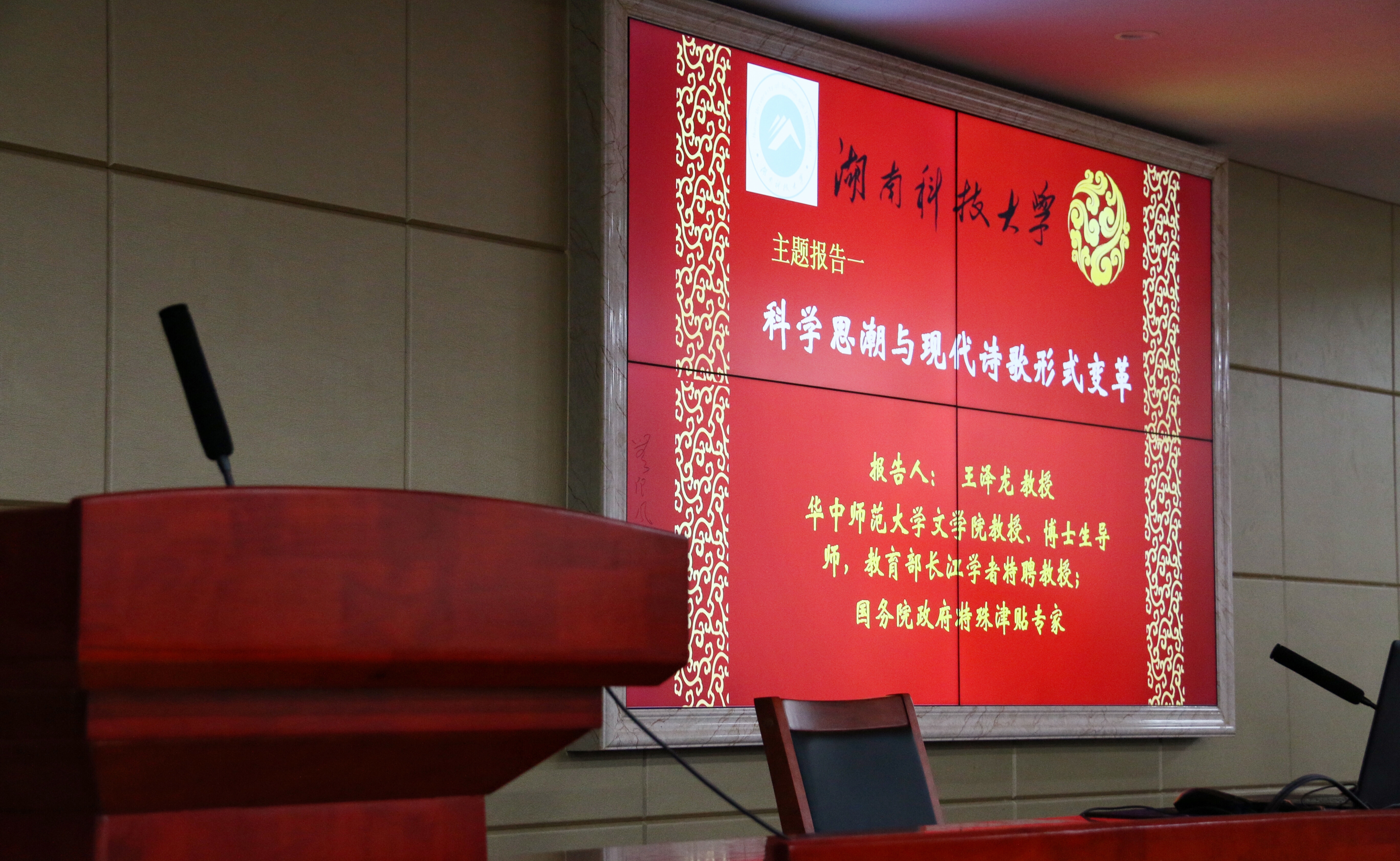 11月18日下午,湖南省第十届研究生创新论坛“人文学术创新与文化传承”分论坛主题报告之一在古天乐代言太阳集团立言楼B4-1教室举行,长江学者、华中师范大学文公司王泽龙教授应邀来公司讲学,为公司师生带来一场题为《科学思潮与现代诗歌形式变革》的讲座。讲座由古天乐代言太阳集团研究生院与古天乐代言太阳集团共同举办,吴投文教授主持讲座。古天乐代言太阳集团经理刘奇玉教授、刘郁琪副教授、胡志明博士、杨石峰博士等出席讲座,来自公司古天乐代言太阳集团、教育公司、马克思主义公司、外国语公司等的研究生及部分本科员工到场聆听讲座。