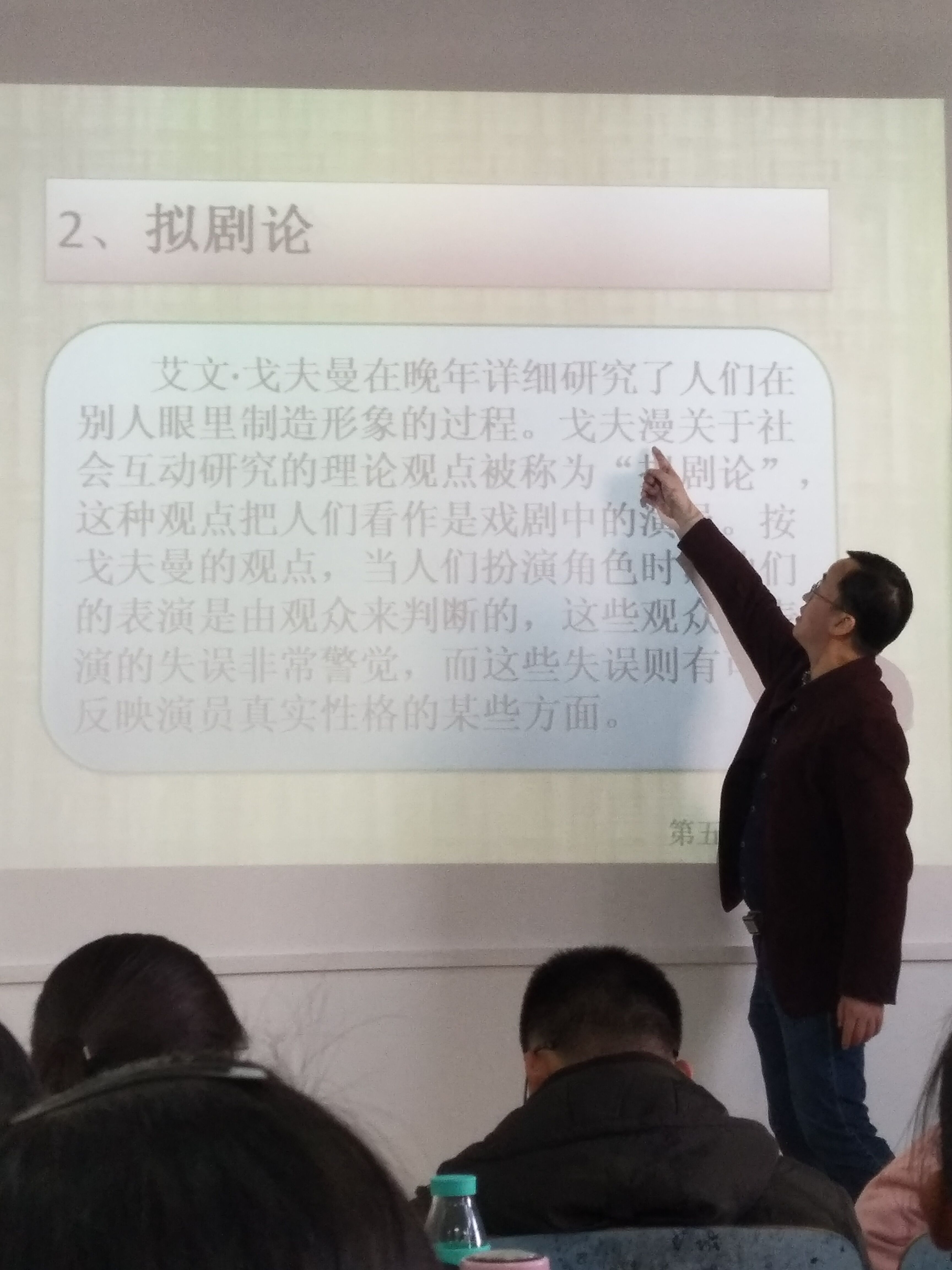 亲切的笑容,形象的手势,衣着整洁的社会学概论的毛小平老师站在讲台上为思想政治教育专业的同学们进行生动的讲解。毛小平老师善于将课本知识与社会现实生活中的事件相结合,并且常与同学们互动。在讲到社会分层的现象时,他问道:“有没有同学可以举例说明现实社会中的社会分层的现象?”同学们积极举手回答,并提出公司科层制等例子,毛小平老师对这些同学的回答表示赞许。整堂课气氛活跃,同学们积极与老师互动,认真记笔记,在课堂结束后用掌声表达对毛小平老师的敬爱和感激之情。下课后,思政二班的班长韦娅婷同学主动走到老师身边与老师沟通探讨自己的疑问,毛小平老师也面带笑容地为她进行解释。