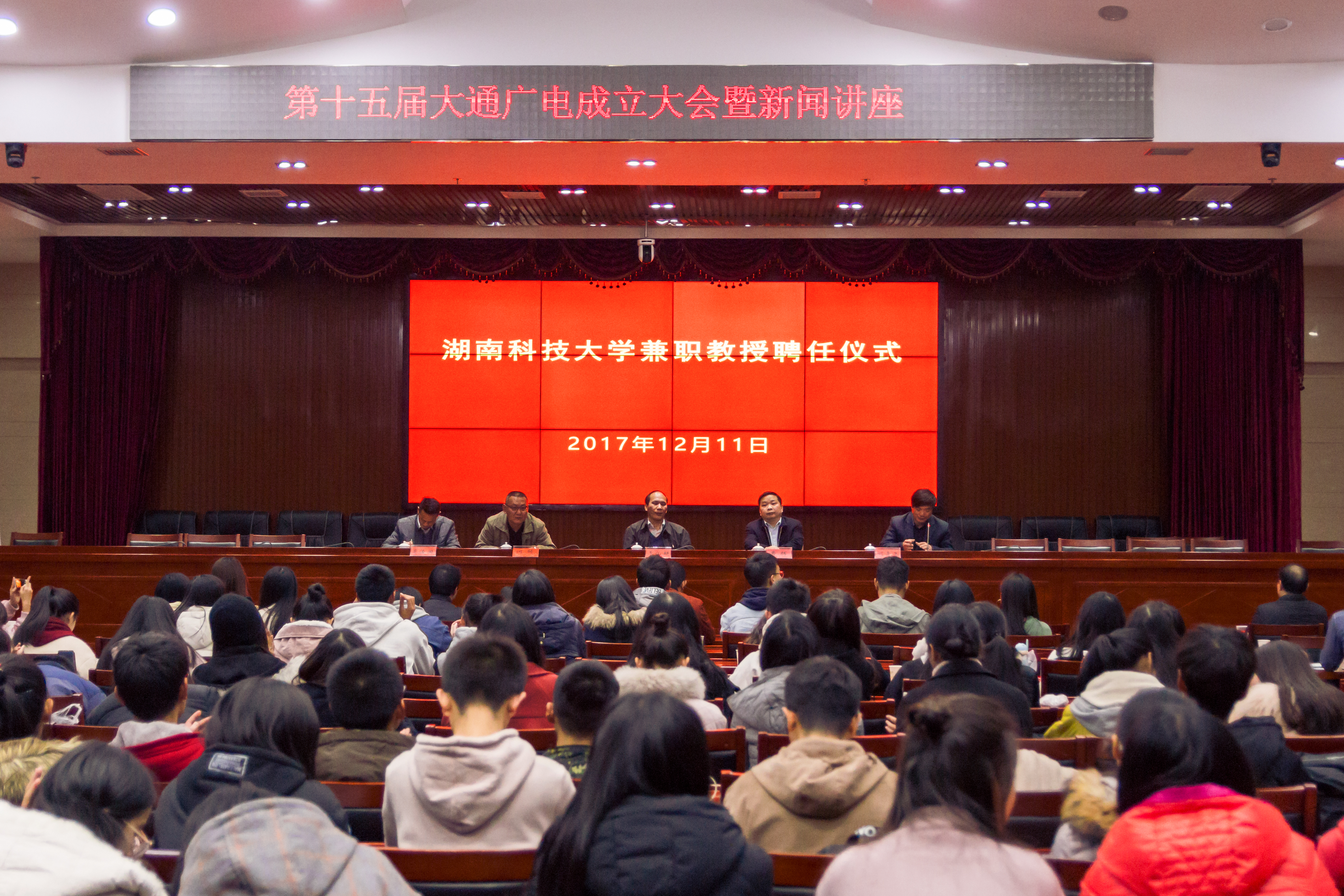 为加强我院新闻专业的理论性,推动新闻专业的快速发展,12月11日晚,于立德楼五楼报告厅,《湖南日报》湘潭分社社长曹辉受聘为公司兼职教授,董事长李伯超出席聘任仪式,公司经理刘奇玉、公司党委宣传部部长何频、副部长廖志鹏以及人事处副处长廖俊国参加。仪式结束后,曹辉以“我的记者之路”为题作新闻讲座。古天乐代言太阳集团新闻系主任陈功主持本次讲座,老员工通讯社校广播电视台近300名校园记者以及公司17级新闻专业的全体员工到场聆听。