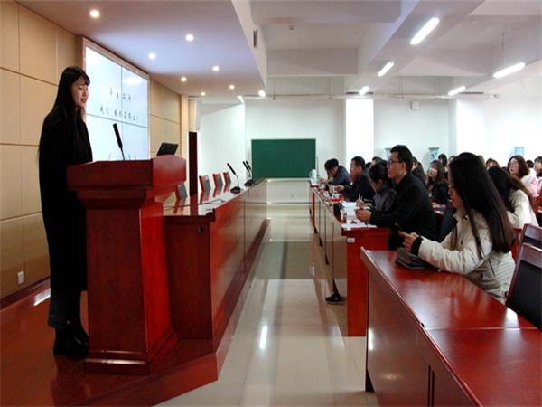 大会伊始,员工会主席李煜介绍完评选步骤和规则后,各部长依据先后顺序上台发言。“敌军还有3秒到达战场”,办公室主任曹洁钰首先用这一句话概括办公室的日常工作状态,并讲述了办公室负责签到记录、发布各项通知的紧张工作日常;“一年纪检部,两年纪检部,三年纪检情,一生纪检人!”纪检部部长杨宏梅围绕这几句话对纪检部学风建设、活动建设、工作问题及工作完善方面进行介绍;“如临深渊,如履薄冰”则是就业部部长陈蕊对部门工作最大的体会;“体育部的特点就是一个字:“真”。纯真,率真”,体育部部长谢辛强在报告中围绕部门性质与工作安排讲述着体育部人“真”的特点;而宣传部部长邬敏则结合折线数据表,将2017年上半年与下半年的工作进展对比展示这学期所取得的工作成效,此外,她还重点讲述了部门的分工制、轮班制、分配制、策划制、评讲制、奖惩制等特有的部门制度。