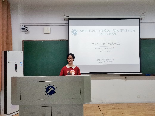预答辩开始前,李康澄教授简要介绍了答辩流程,并督促同学们抓紧时间修改自己的毕业论文,会后及时与各自导师沟通并完成终稿。会上,刘文华、郭艳梅、高琦、唐顺昕、曾惠中、毛桂六名报告人依次向各位老师汇报了毕业论文的创新和不足之处。她们的论文题目分别为“动词性构造四字格成语的向心性研究”“邵阳(市区)方言俗语言研究”“‘V(P)这个V(P)那个’结构的语义语用研究”“湘潭方言词汇研究”“‘V了个寂寞’构式研究”“汉藏语系量词重叠的类型学研究”。