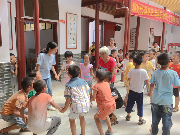 此外,志愿者们还带着幼儿班的孩子们玩起了“萝卜蹲”等游戏,连何舒香老师与杨莲金老师也加入其中,“小孩子们最愿意拉着老师的手了,看到腼腆的不愿意参加游戏的小朋友,你就主动去邀请他,拉着他的手一起玩。”杨老师亲自参加游戏后指导志愿者如何与孩子们走得更近,“大手拉小手,是最好的办法。”