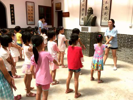 烈日下孩子们的脸颊上晕开一层层淡淡的腮红,但掩不住他们对我们的热情和期待,来到荷塘小镇的第一个下午我们便展开了准备已久的支教活动。“坐观垂钓者,徒有羡鱼情”,志愿者银文在课堂上为大家讲述的是诗人孟浩然求官的坎坷经历;“学而不思则罔,思而不学则殆”,志愿者伍园园在课堂上为大家讲述的是孔子的学习方法;志愿者李锦新则教着六年级的孩子们如何换算古代的货币......学习从来都是一件辛苦的事,教室如摆在火焰上的一架蒸笼,孩子们的汗水混着墨汁渗在作业本上,但脸上却洋溢着幸福的表情,仿佛在告诉志愿者们:“读书是一件快乐的事,你们便是给我们带来快乐的人”。