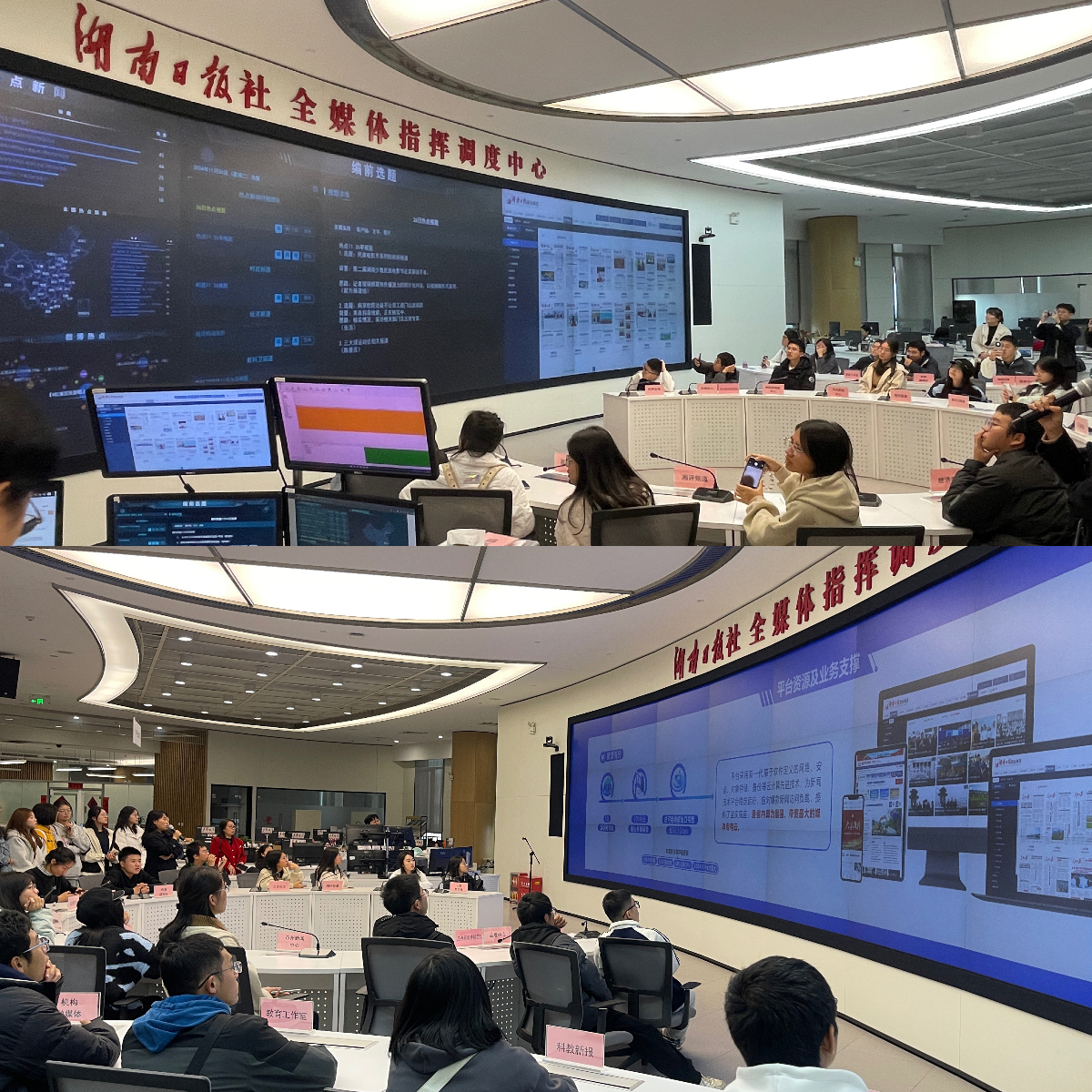 接下来,员工们参观了湖南日报中央厨房。作为湖南省传统媒体与新兴媒体深度融合的标杆,湖南日报中央厨房自2018年底投入使用以来,已成为内容生产、全媒体传播和舆情管理的重要平台。通过智能化的技术手段,中央厨房实现了新闻内容的集中生产和分发,极大提升了新闻传播的效率和精准度。在参观过程中,同学们亲眼见证了大数据分析如何支撑全省乃至全国舆情的监测与反馈,直观感受到了现代新闻生产模式的变革。这一体验让同学们对媒体融合的实际操作有了更深刻的理解,课堂上所讲的新闻传播理论也在现场得到了生动的映射。