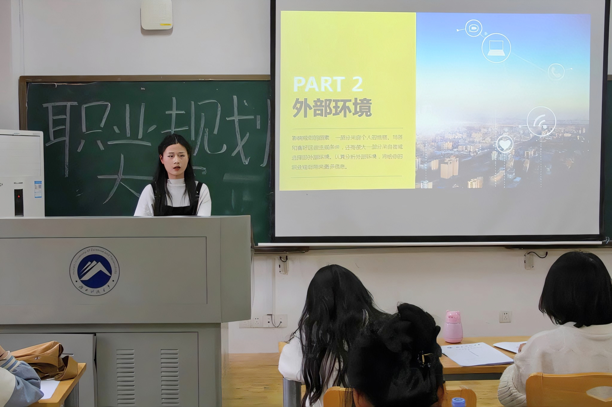 选手们通过对职业环境的分析和自我认知的SWOT分析,明确职业方向、制定职业目标与计划。20级文学四班于向鑫从专业角度出发,认真审视自己目标中的两个十年,计划成为一名大学老师。康德曾言:“没有目标而生活,恰如没有罗盘而航行。”通过职业生涯规划比赛,参赛同学们坚定了职业目标,找到了引领自己未来的罗盘,用他们饱满的热情和精彩的演讲描绘着属于他们未来的蓝图。“在比赛准备的过程中,我对自己进行反思和定位,有了更清晰的目标。”