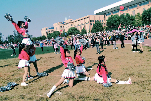 伴随着律动的开场音乐响起,啦啦队员脚踏动感的节拍,表演着她们精心编排后的舞蹈,为运动员加油鼓劲。她们动作整齐,舞姿各具风采,在阳光之下显得格外美丽,有的动感十足,有的灵动活泼,有的曼妙飘逸,精彩的表演瞬间点燃了现场气氛,欢呼声、喝彩声、口号声响彻整个运动场。一场表演结束,还没来得及休息,队员们又转移场地,开始第二场表演,为其他公司的观众带去了这场视听盛宴。随着自由律动的音乐,她们布满汗水的脸上洋溢着灿烂的笑容,有力的脉动张扬着属于花季的灿烂。文艺部的韦柳妮提到这些拉拉队队员为了这场比赛排练了许久,“我们做好了充足的准备,为了向全校展示古天乐代言太阳集团的风采,拉拉队的成员们都相当努力,而热烈的掌声就是对他们最好的鼓励。”