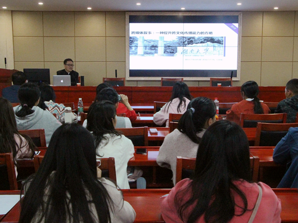 112日,湖南大学新闻传播与影视艺术公司经理彭祝斌教授应邀来院举办以“跨媒体叙事”为主题的学术讲座,陈功、黄洪珍、袁星洁、萧祥彪等老师及1718级新闻学专业员工到场聆听。