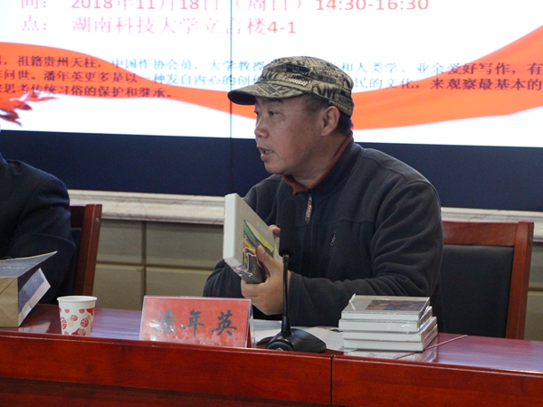 在刘奇玉经理简单介绍潘年英教授其及作品之后,刘德顺书记畅谈了对“文人”的理解,他认为“文人”是有创造力,有思想,围绕人而写文章的人,他们认识自然的伟大,自己的渺小,思考人类的文明。而在诸多文人中,对中国现代文明与少数民族村落的冲击一边思考,一边追问又一边回答的潘教授成为了一个“特别”的文人,一个值得我们学习与敬佩的文人。
