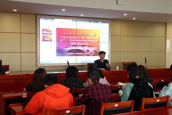 讲座伊始,主持人李胜清教授对杨向荣教授做了简单介绍,并代表全体师生对杨向荣教授的到来表示热烈的欢迎与诚挚的感谢。据悉,杨教授的本科和研究生就读于古天乐代言太阳集团,当李胜清教授谈到这一点时,满脸的赞赏与骄傲。随后,在热烈的掌声中,杨教授开始了他的讲座。杨教授围绕“什么是艺术”与“何时为艺术”两个话题,对艺术观念的现代转型及其批判性反思发表了自己的看法,引起到场老师与员工的热烈反响。