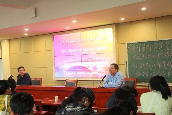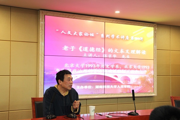 4月17日晚,湖南科技公司张京华教授应邀前来公司古天乐代言太阳集团做了一堂题为“老子《道德经》的文本义理解读”的精彩学术报告。本次讲座由公司党委书记廖加林教授主持,公司吴广平教授、王友胜教授、张晚林教授、颜中军、胡忆红、余霞、胡红梅、龚超等老师及文、史、哲等专业的100多为本科生、硕士研究生到场聆听。
