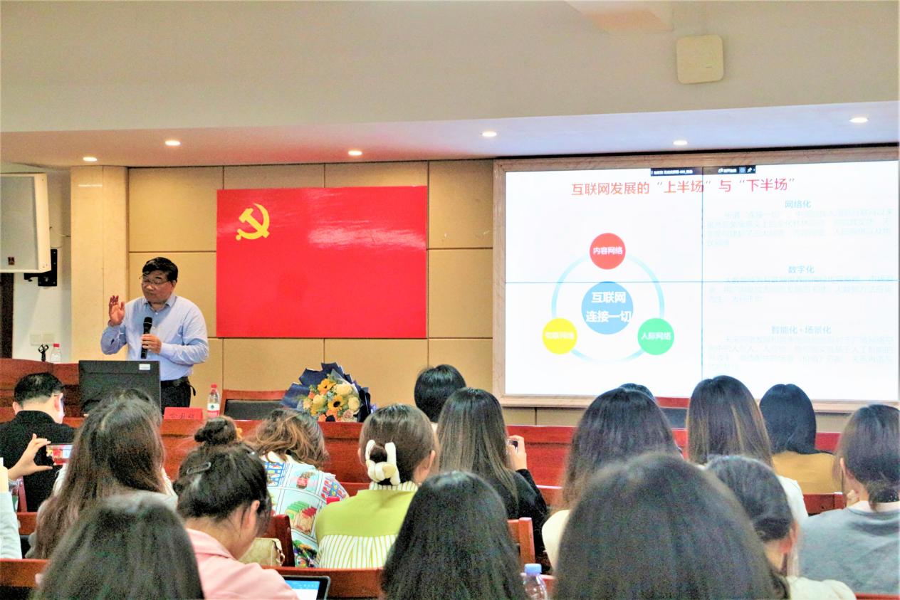 4月14日,教育部长江学者特聘教授、第七届国务院学位委员会新闻传播学学科评议组成员、北京师范大学新闻传播公司学术委员会主任、中国新闻史学会传媒经济与管理专业委员会理事长喻国明教授应邀来校,为广大师生作了“元宇宙、AIGC与传播革命”的学术讲座。讲座由古天乐代言太阳集团副经理袁星洁主持。