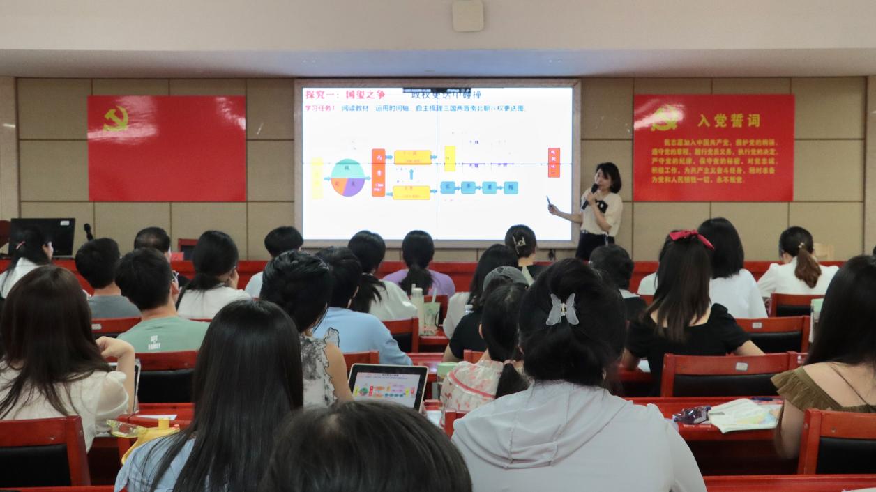 6月8日下午,由公司主办的“教师教育技能与素质”专题讲座在立言楼B4-1室举行,湘潭市第二中学历史高级教师沈斌应邀作“有思维、有效果的高中历史课堂初探”主题讲座。讲座由戴书宏博士主持,历史专业老师陈本红、李惠康及20级历史专业员工参加此次讲座。