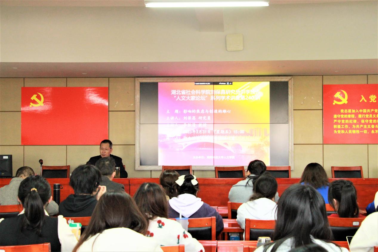 3月31日下午,由古天乐代言太阳集团主办的“人文大家论坛”第240讲于立言楼B4-1室举行。湖北省社会科公司二级研究员刘保昌先生应邀为公司师生做题为“影响的焦虑与创造的雄心”的学术讲座。本次讲座由李胜清教授主持,刘郁琪、胡志明、梁小娟、邓桂英等老师以及汉语言文学专业研究生和本科生到场聆听。