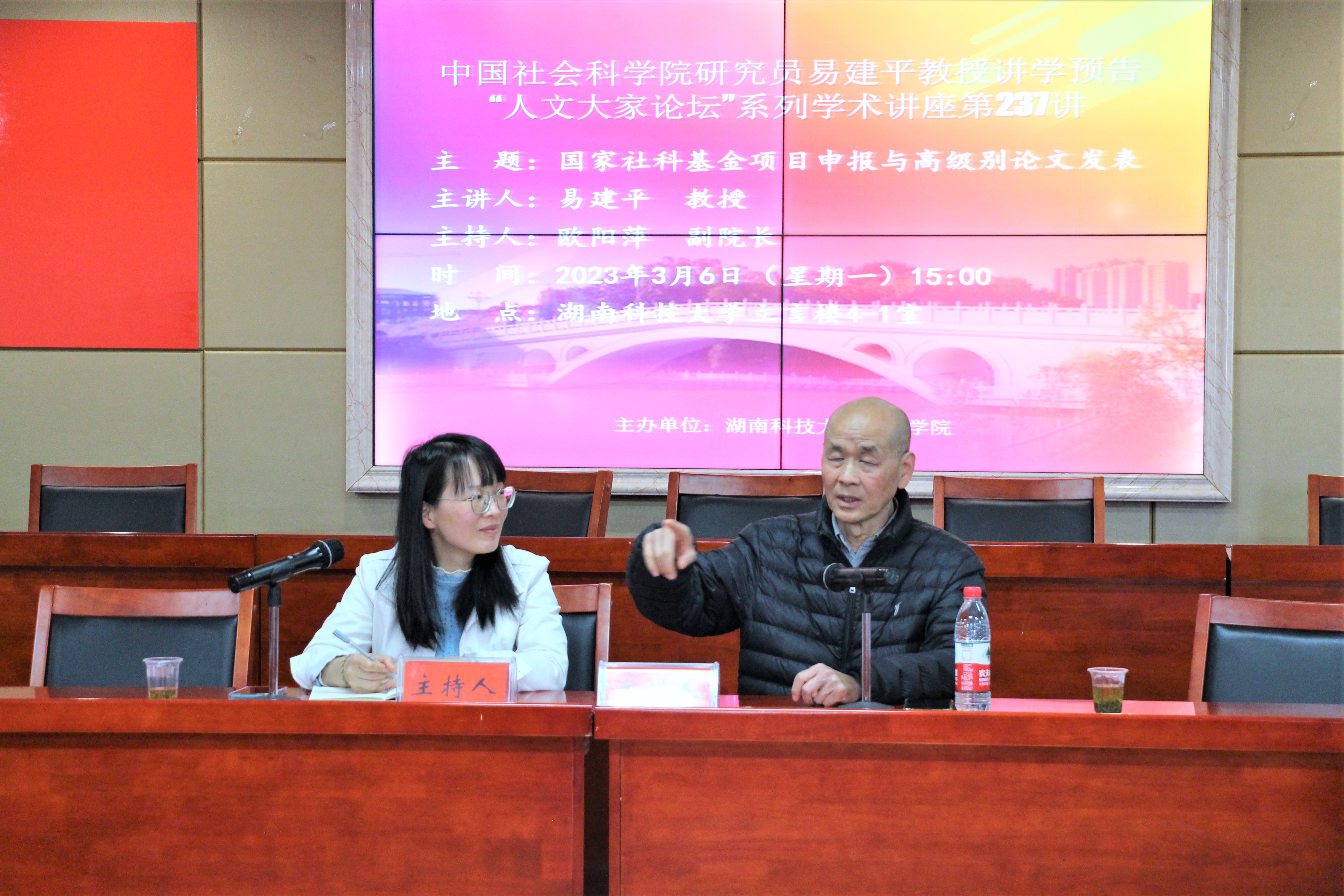 3月6日,由公司主办的“人文大家论坛”系列学术讲座第237讲于立言楼B4-1室举行。中国社会科公司研究员、华南师范大学教授易建平应邀作“国家社科基金项目申报与高级别论文发表”主题讲座。讲座由公司副经理欧阳萍主持,各专业教师代表参加。